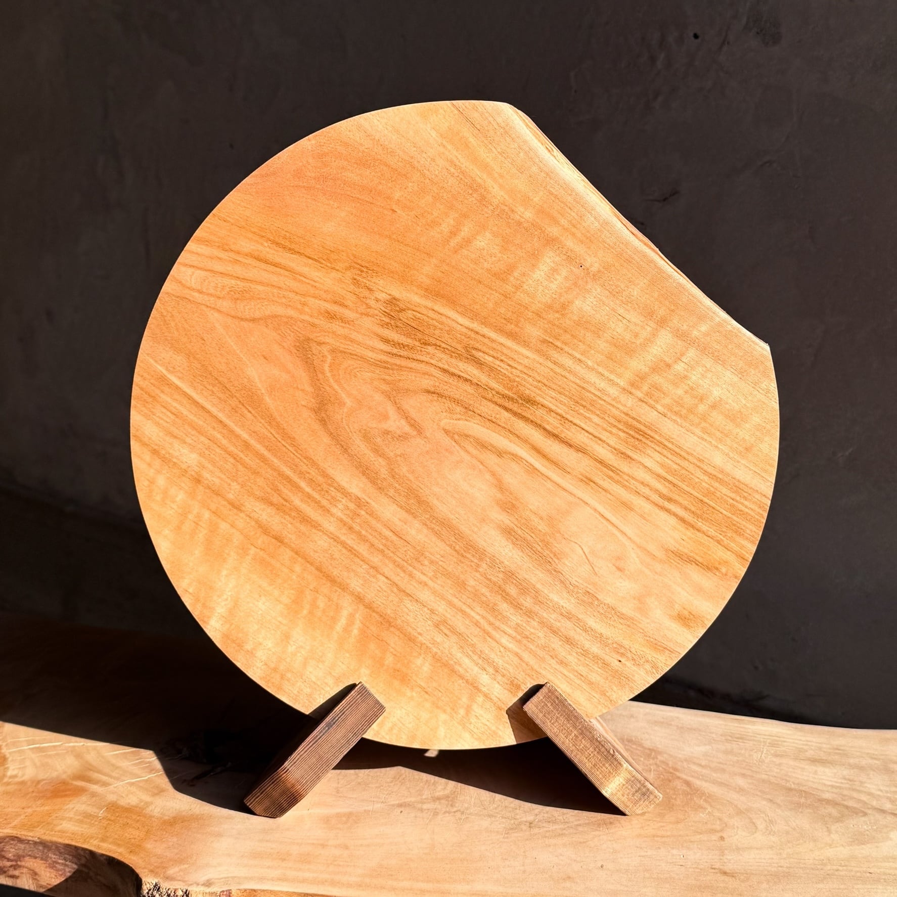 山桜の良材を丸にカットしました。