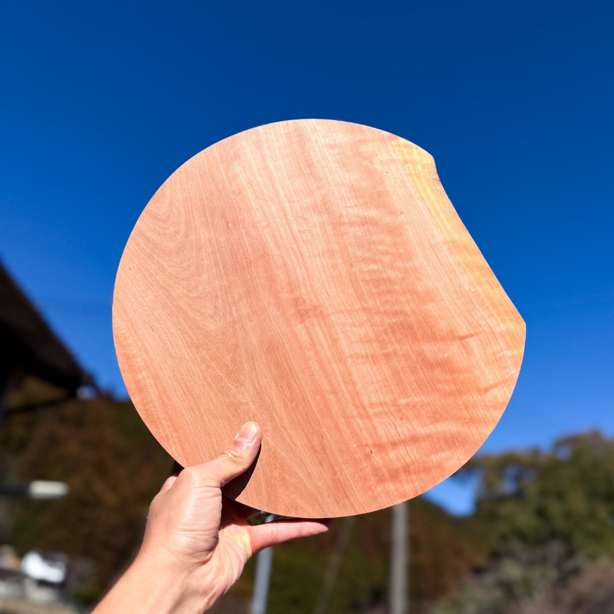 本材のように色があざやかで澄んでいて、木目の流れもよく、しかも杢まで浮かんでいて割れがない、こんな素材がたくさんあったら仕事がもっと楽しくなりそうだなーと思います。