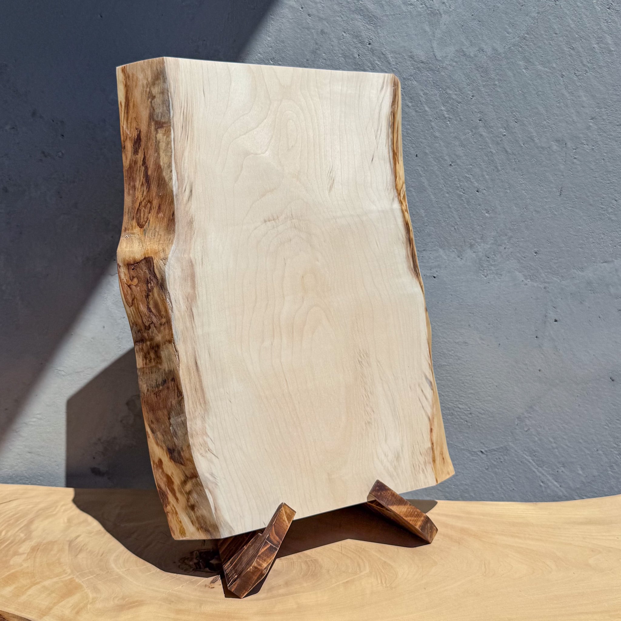 派手な杢はありませんが、澄んだ白に彫刻の文字が映えそうです。